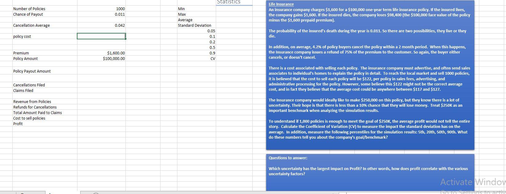 Number Of Policies Chance Of Payout 1000 0 011 Life Chegg Com